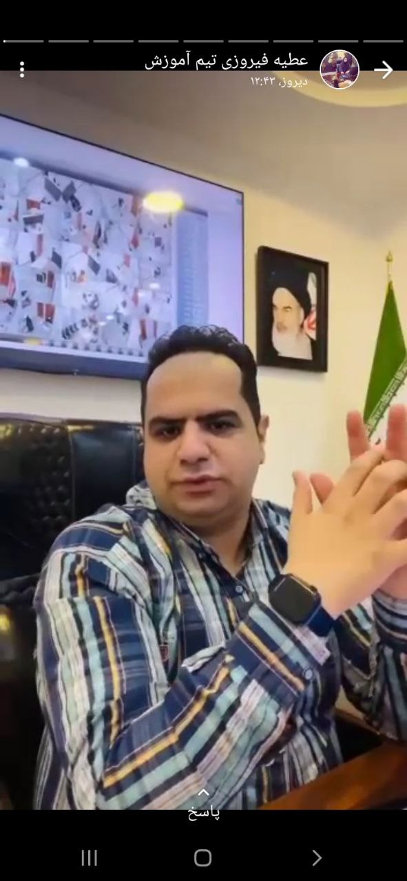 عطیه فیروزی فعال در تیم آموزش، ویدیویی از سخنرانی مهندس زیارکلائی را در وضعیت خود قرار داد.