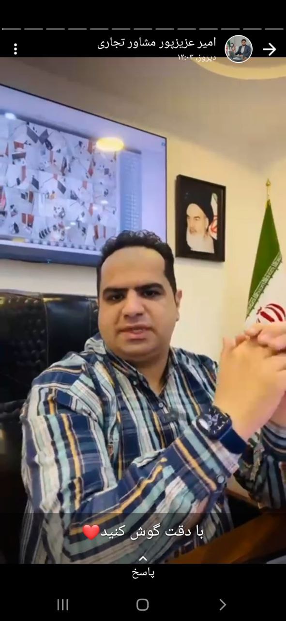 امیر عزیزپور از مشاوران تجاری، کلیپی از سخنان مهندس زیارکلائی را در وضعیت خود درج نمود.
