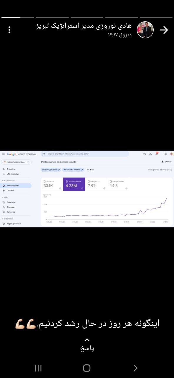 هادی نوروزی یکی از مدیران تجاری، عکسی از نمودار رشد مجموعه را در استاتوس خود به تصویر کشید.
