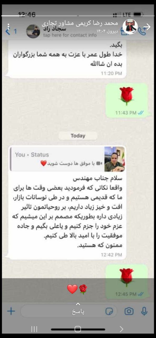 محمدرضا کریمی از دیگر مشاورین فعال، عکسی از پیام تاجر خوش ذوق مجموعه را در استاتوس خود به تصویر کشید.