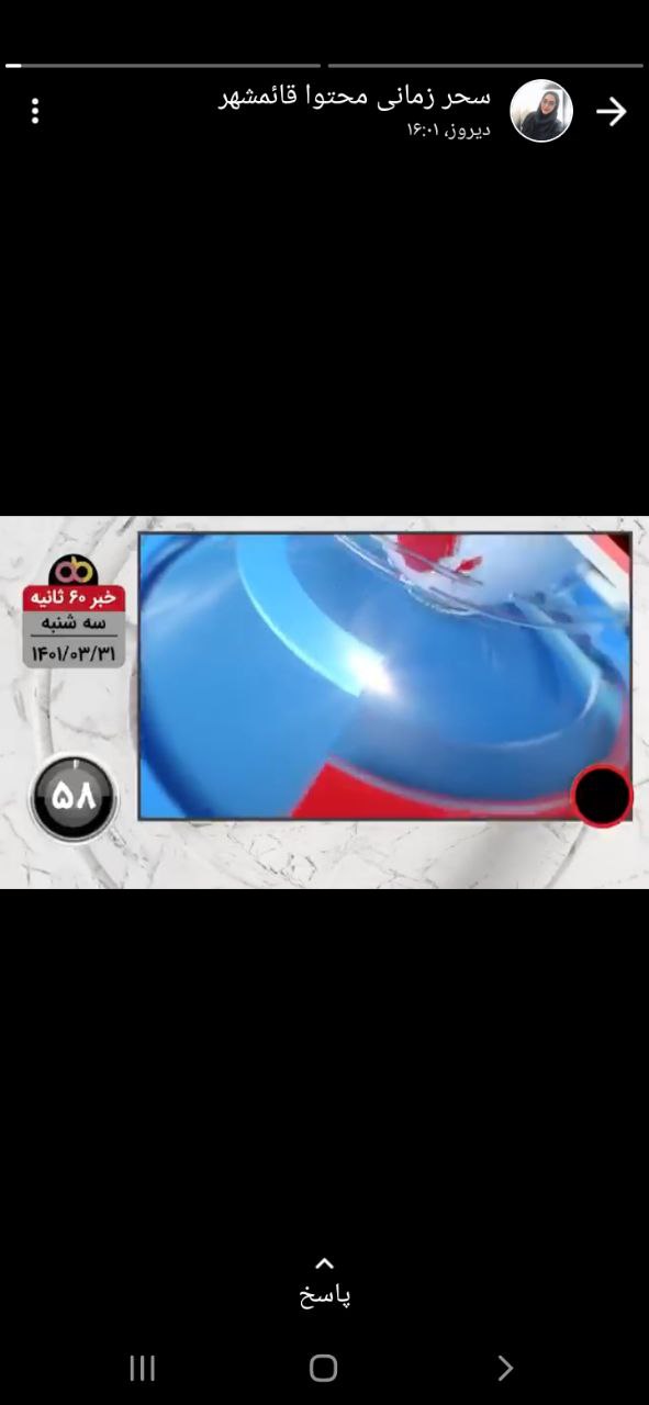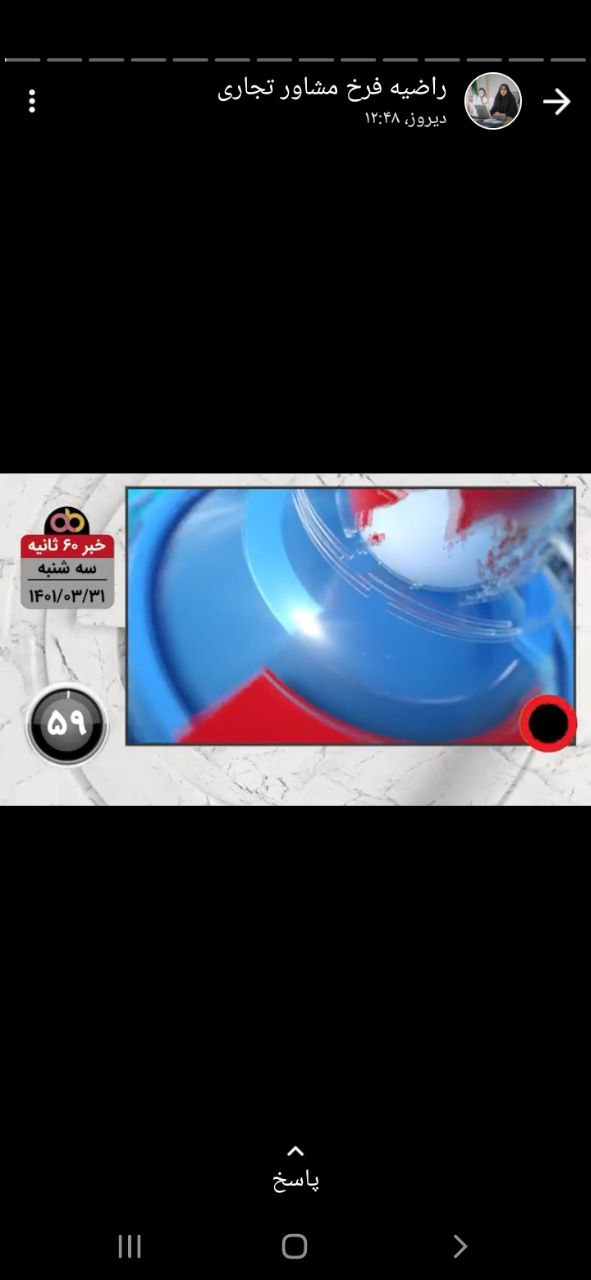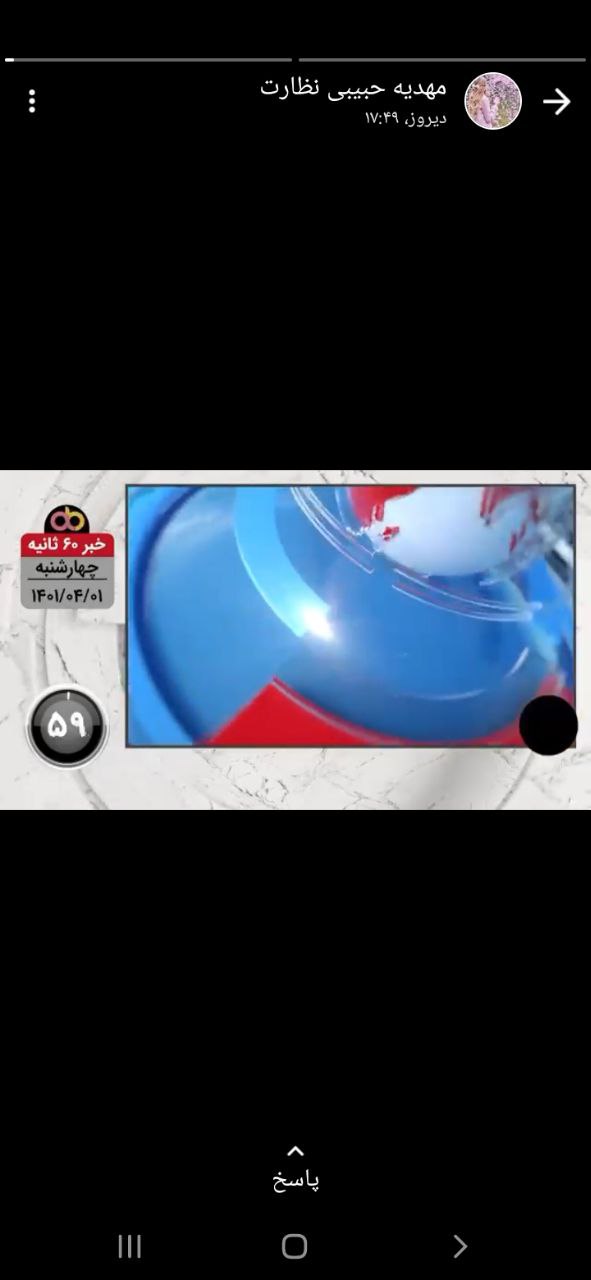 مهدیه حنیفه یکی از پرسنل فعال، کلیپی از اخبار 60 ثانیه را در وضعیتی به نمایش گذاشت.