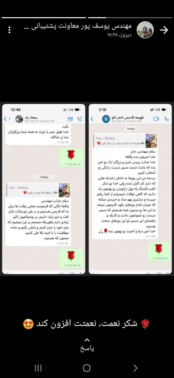 مهندس یوسف پور معاونت پشتیبان تخصصی، عکسی از پیام تاجران مجموعه را در استاتوس خود به تصویر کشید.