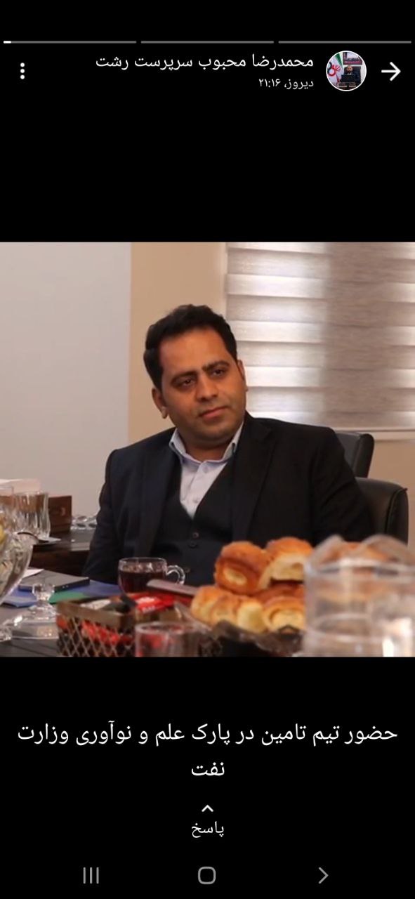 محمدرضا محبوب سرپرست شعبه رشت، کلیپ بازدید تیم تامین از پارک علم و نوآوری وزارت نفت را در استاتوس خود قرار داد.