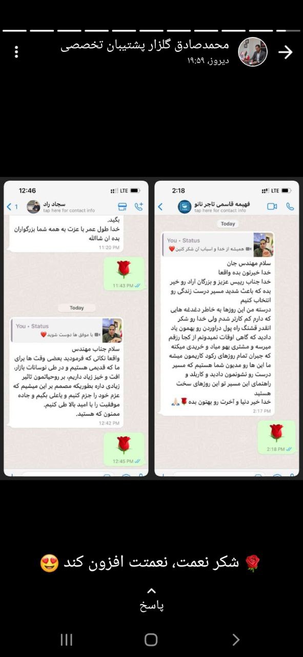 محمدصادق گلزار پشتیبان تخصصی، عکسی از پیام تاجران خوش ذوق مجموعه را در به اشتراک گذاشت.
