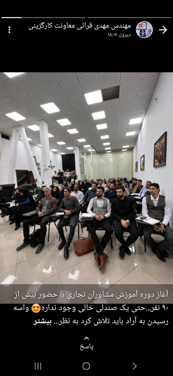 مهندس مهدی قرائی معاونت کارگزینی، تصویری از دوره آموزشی مشاورین تجاری را در وضعیت فعلی خود قرار داد.