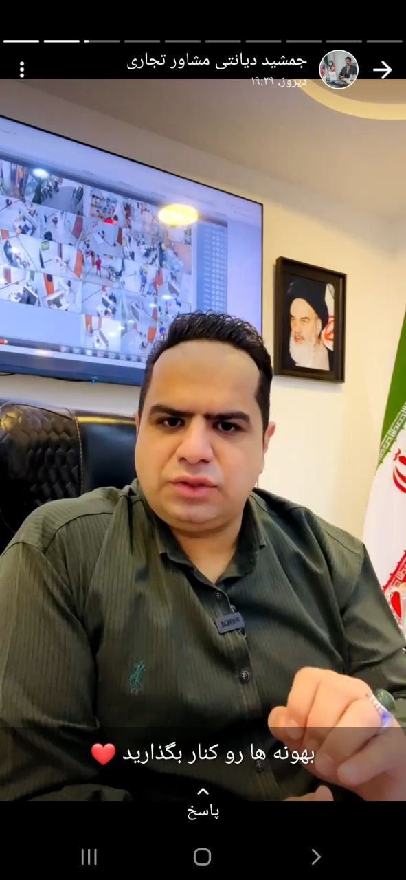حمیدرضا دستوریان از مدیران تجاری، عکسی از پیام انگیزشی تاجر موفق مجموعه را در وضعیت فعلی خود قرار داد.