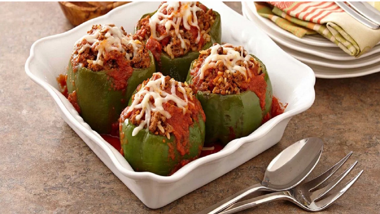 فلفل دلمه ای شکم پر با گوشت چرخ کرده