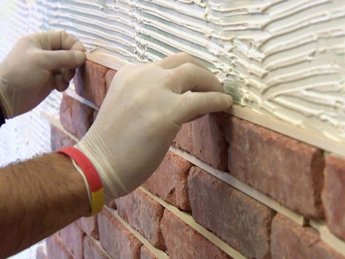 در استفاده داخلی بهتر است از چسب مایع استفاده شود ودر نمای بیرونی از پودر خشک استفاده شود. بهتر از هنگام استفاده از چسب آجر نما ابتدا گرد و غبار و مواد روغنی تمیز گردد و در بخشهایی که تراز نیز مقدار بیشتری از چسب ریخته شود تا زیر آجر کاملا پر شود و نا هموار نباشد.