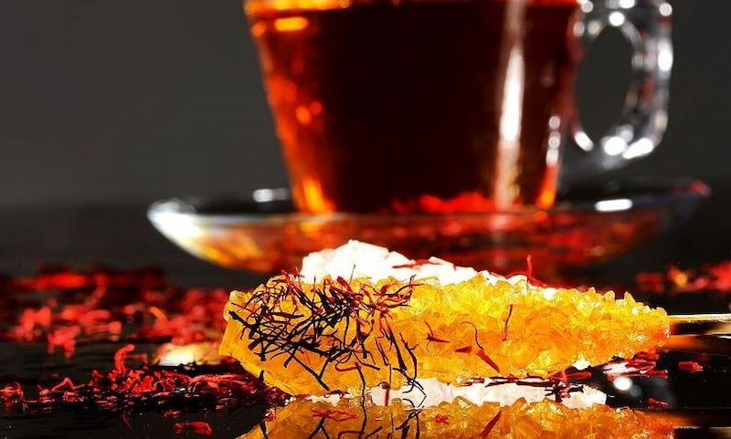 زعفران به کار رفته در نبات خاصیت ضد سرطانی دارد همچنین موجب تقویت قدرت ذهن می شود، باعث خواب راحت و آسوده می شود، انرژی بدن را افزایش می دهد، باعث بهبود تنگی نفس می شود، در تحکیم بافت استخوان بدن نیز نقش اساسی دارد.