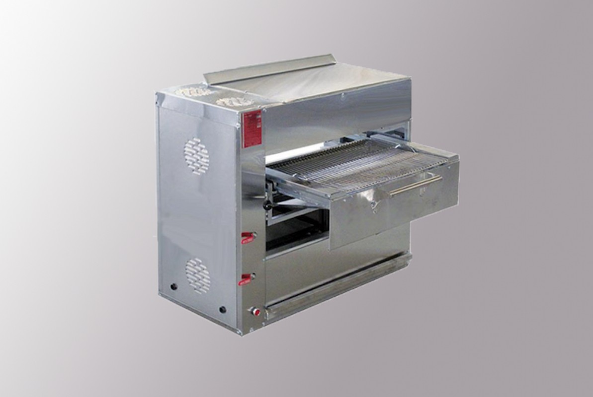 از مناسب ترین کباب پزها برای خانه ها، کباب پزهای تابشی رومیزی و کباب پز کوچک است که برای آشپزخانه های کوچک و فست فودیها می باشد. در مدلهای رومیزی از سه ردیف مشعل استفاده می شود تا کبابها با طول پنجاه سانت و یا تعداد بیشتری ماهی و استیک و غیره آماده شود. کباب پز رو میزی در دو نوع استیل و نیمه استیل طراحی و تولید می شود.