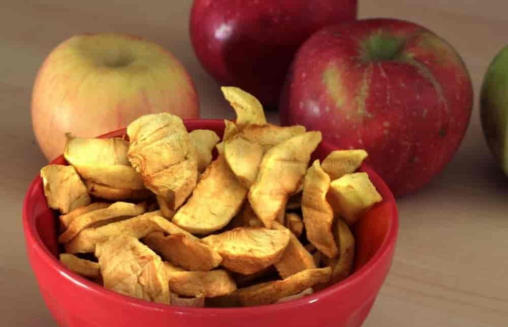 وقتی شما از بازار سیب می خرید زمان مشخصی برای خوردن آن وجود دارد و پس از گذشت این زمان کم کم پوست آن چروکیده می شود و از کیفیت آن نیز کاسته می شود اما در صورتی که تبدیل به سیب خشک شده می شوند زمان نگهداری آن چندین برابر می شود. رنگ سیب وقتی که مدتی برش زده شود تغییر می کند ولی چیزی از خاصیت آن کم نمی شود و درست موقعی که سیب به شکل چیپس در میاید چون در معرض هوای آزاد قرار می گیرد هم تغییر رنگ می دهد.