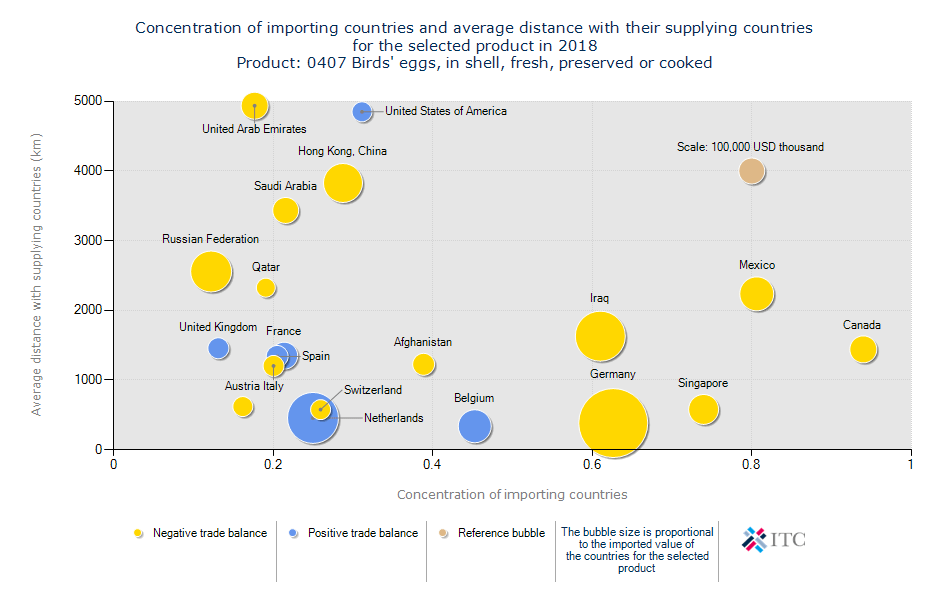 میانگین فاصله از کشور وارد کننده: ۱,۷۷۳ KM آمار واردات تخم مرغ هدف شناخت متقاضیان و پتانسیلها در بازار جهانی است.