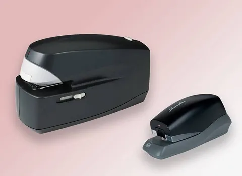در این نمونه یک دکمه کوچک به جای اهرم روی منگنه کوب قرار دارد و با فشار کمی عمل منگنه کوبیدن را انجام می دهد.