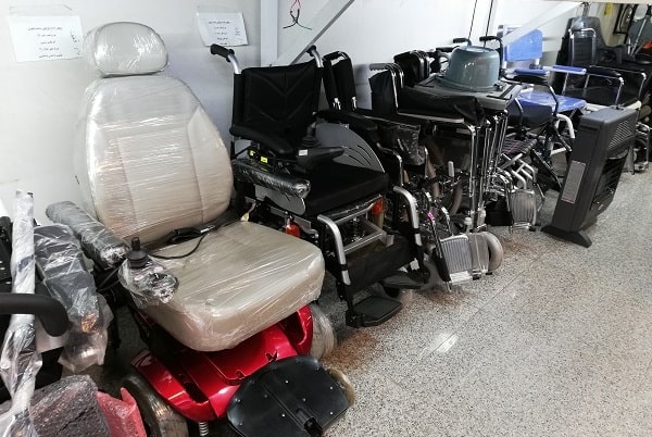 شهر تهران دارای تعداد زیادی نمایندگی ویلچر برقی است این وسیله شبیه به صندلی میباشد ولی با این تفاوت که به حرکت در می آید به جای پایه دو عدد چرخ درآن تعبیه شده ومناسب افرادی است که درراه رفتن و حرکت مشکل دارند روکش به کاررفته در این صندلی های چرخدار عموما چرم است وطوری طراحی شده اند که اگرساعت ها مورد استفاده قرار بگیرند راحتی را برای فرد به همراه داشته باشند.