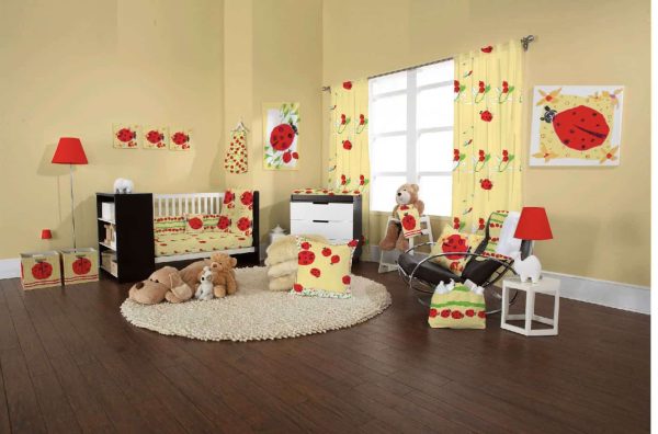 رنگ زرد از جمله رنگهای بسیار جذاب خیره کننده برای نوزاد و همچنین رنگی نشاط آور برای همه افراد است البته زرد طیفهای مختلف دارد و همه طیفهایش این ویژگی را ندارند، مدل زرافه برای اتاق خواب نوزاد از طرحهای پر مخاطب است و به جهت ترکیب رنگهای زرد و قهوه ای و شمایل خود زرافه قابلیت ایجاد تنوع در خود این طرح بالا رفته است.