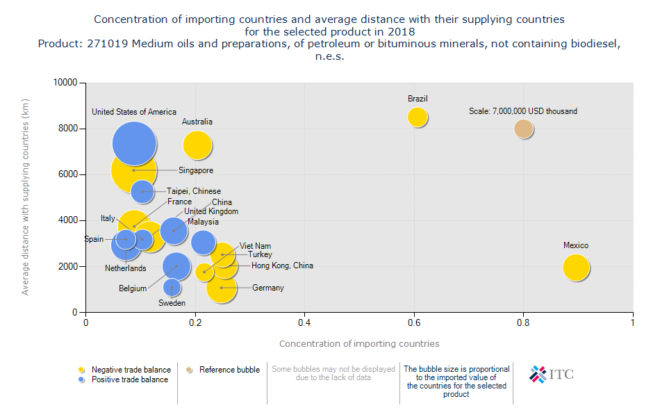 میانگین فاصله از کشور وارد کننده: ۳,۵۱۳ کیلومتر می باشد.