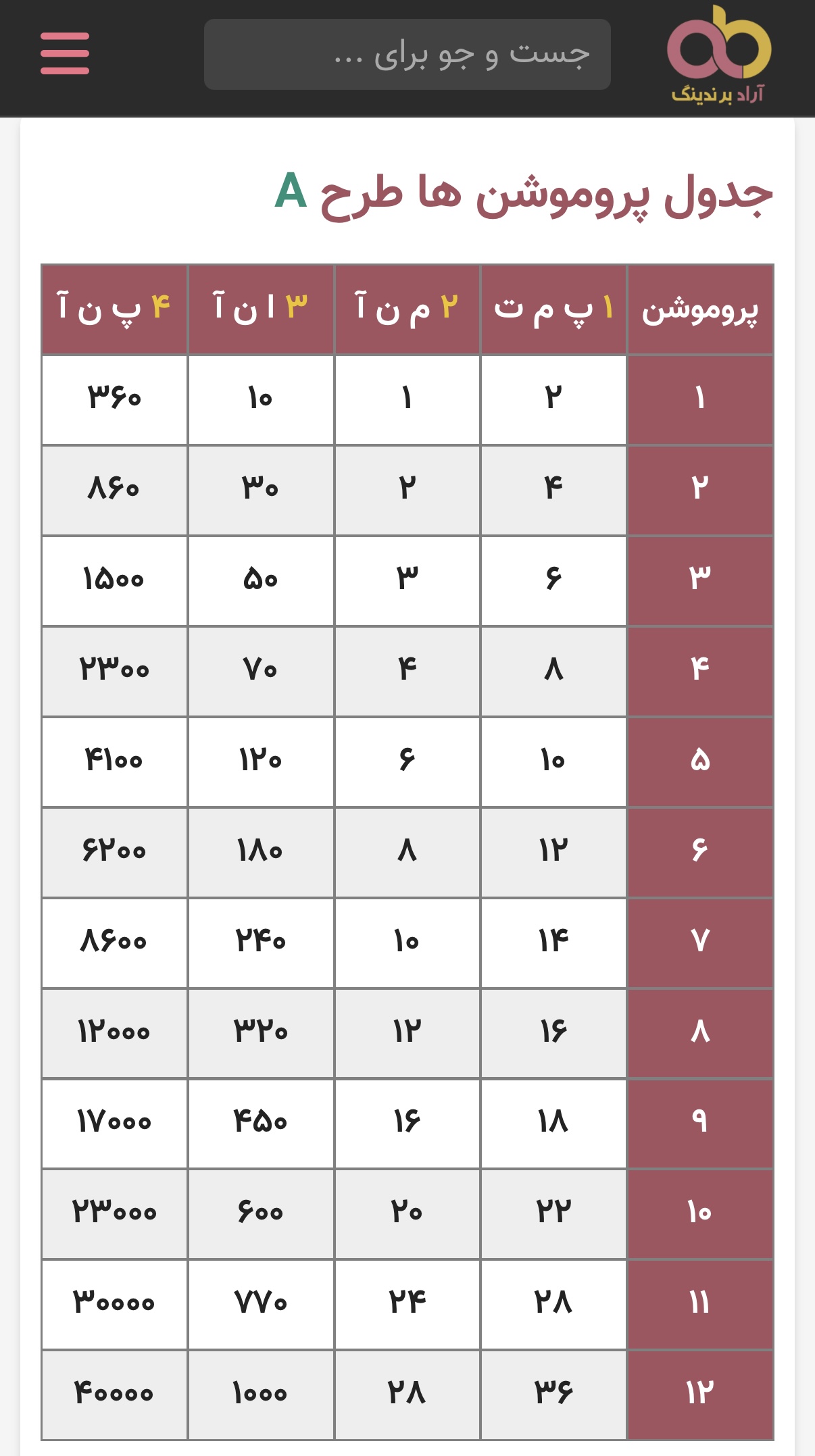 عکس زیر تعداد خدمات آراد برندینگ برای هر پروموشنی را مشخص می کند.