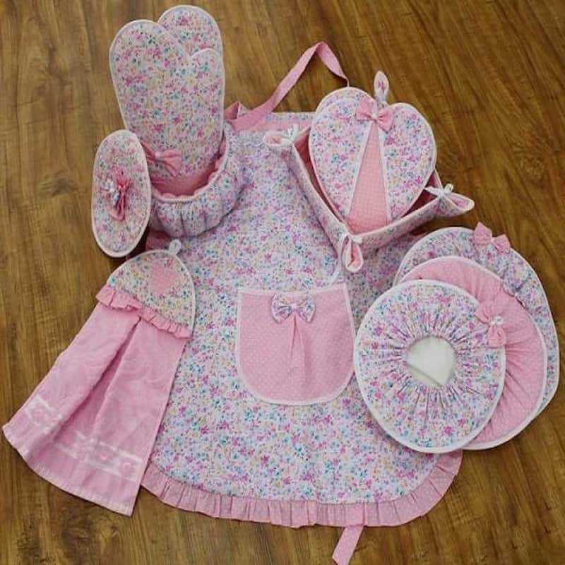 سرویس آشپزخانه عروس پارچه ای شامل ضروری ترین و کاربردی ترین لوازم آشپزخانه است که اغلب کاربرد گسترده ای در آشپزی و نظافت دارد.
