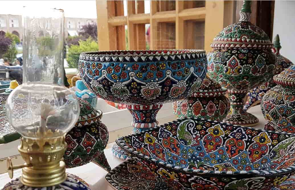 همچنین در شهرهای همدان و اصفهان از ظروف مینا کاری شده و تابلو خاتم کاری به عنوان سوغاتی استفاده می کنند ترکیب رنگ آبی و سفید که در این هنر به کار رفته می شود باعث می شود تا یک آرامش به صورت ناخودآگاه درون شخصی که در حال نگاه کردن به این هنر است جاری شود.