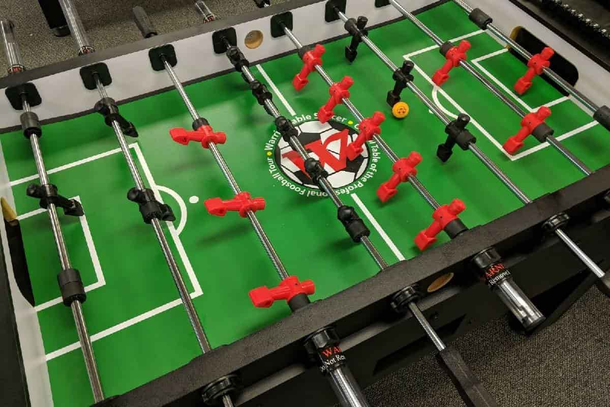 اندازه استاندارد این میزها هفتاد در صد و بیست و ارتفاع نود سانتی متری از زمین می بماشد و دارای عرض دروازه نوزده الی بیست و یک سانتی متری می باشد واغلب جنسبدنه میز از چوب و میله های فلزی و آدمکهای آن از پلاستیکهای فشرده می باشد و توپهای کوچکی از جنس جعبه پلاستیکی دارد.