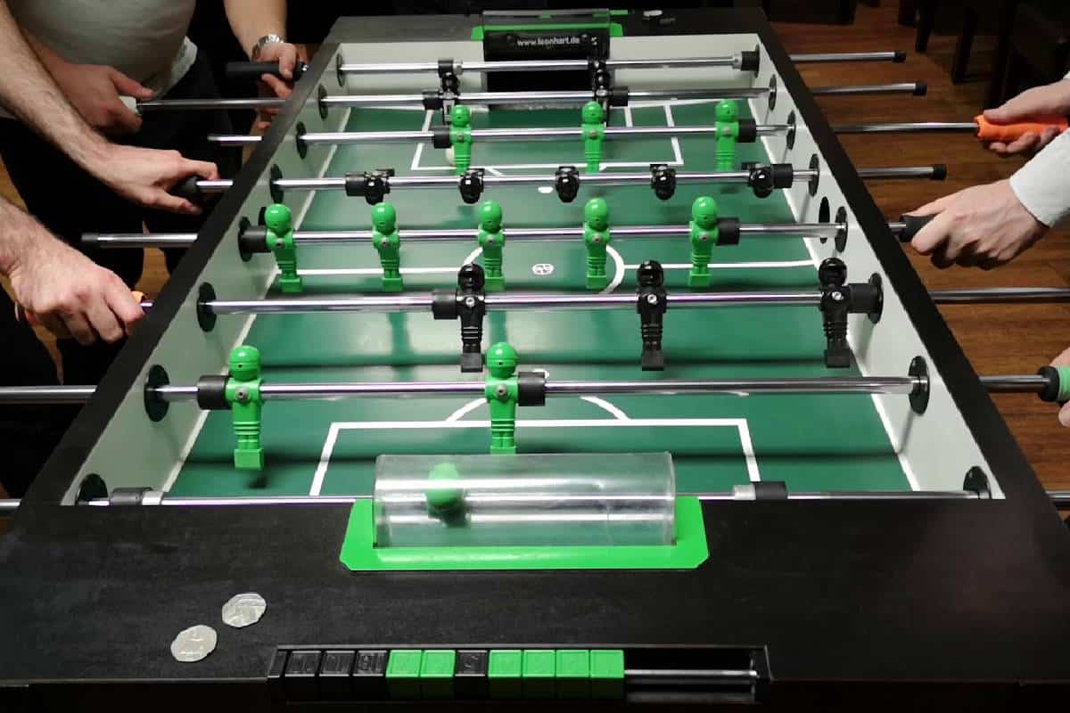 مورد پنجم جنس بدنه: همانطور که در بخشهای بالاتر گفته شد این میزهای بازی را از چوب طبیعی می سازند که بسیار گران خواهد بود اما نمونه های ارزان تر آنها را با ام دی اف و یا پلاستیک تولید می کنند که به ترتیب از چوب ارزان تر می باشد و پیشنهاد می شود که جنسهای چوبی و مرغوب را خریداری کنید جرا که این یک بازی پر هیجان است و در صورت فشار و ضربه های وارده احتمال خراب شدن آن زیاد می باشد.