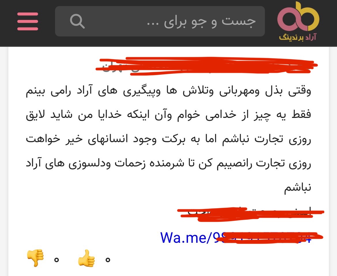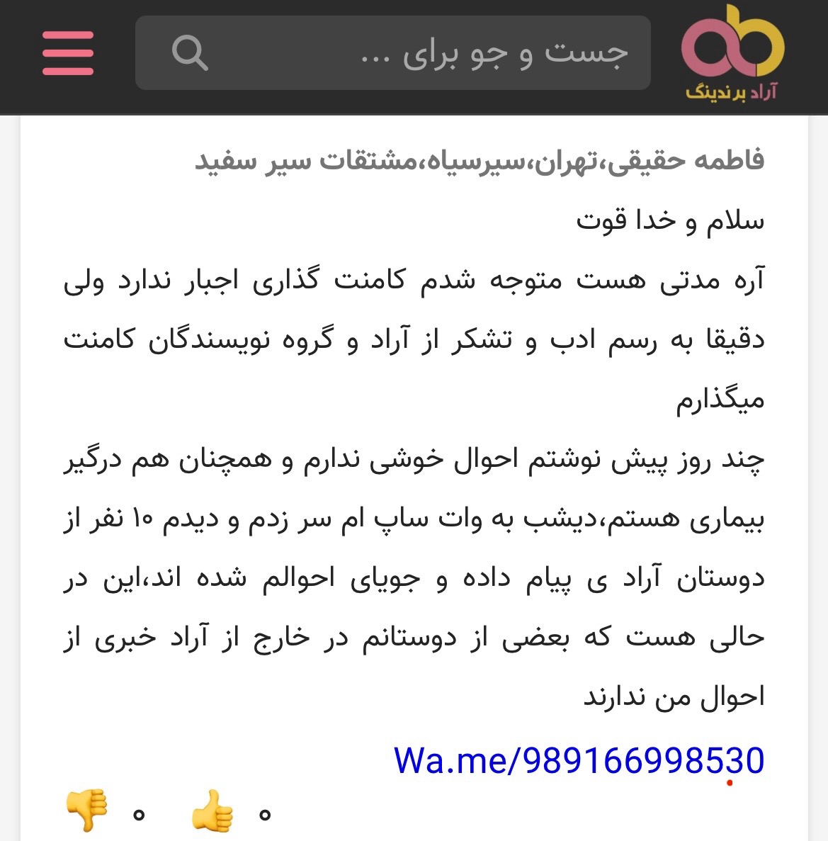 این پیام فروش یکی از تاجران آرادی بود که واقعا هم از عاشقان آراد است.