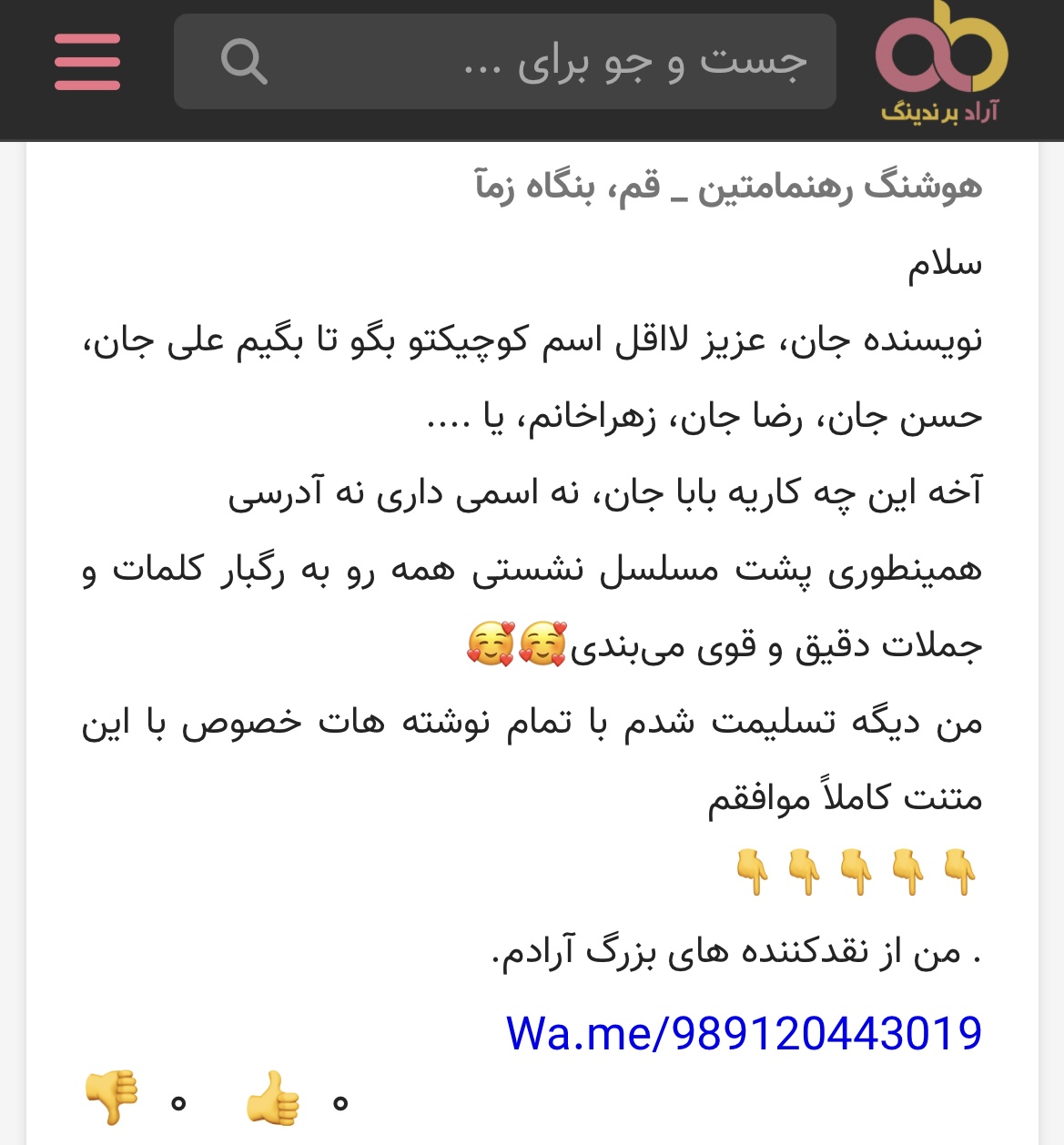 شخصی که چند روز پیش کامنتش را گذاشتیم دوباره برایمان نوشت:
