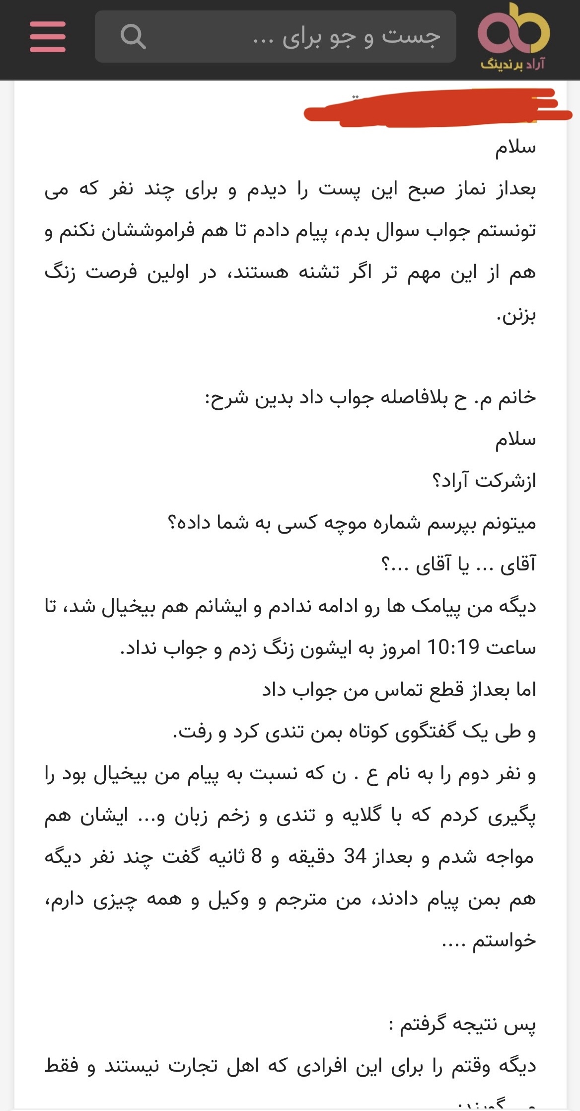و آخرین موضوع اینکه با وجود آنکه در شرکت های مختلف تجاری بزرگ و کوچک کار کرده ام اما به طور قطع می گویم هیچکدامشان یک صدم آراد هم نمی شوند.