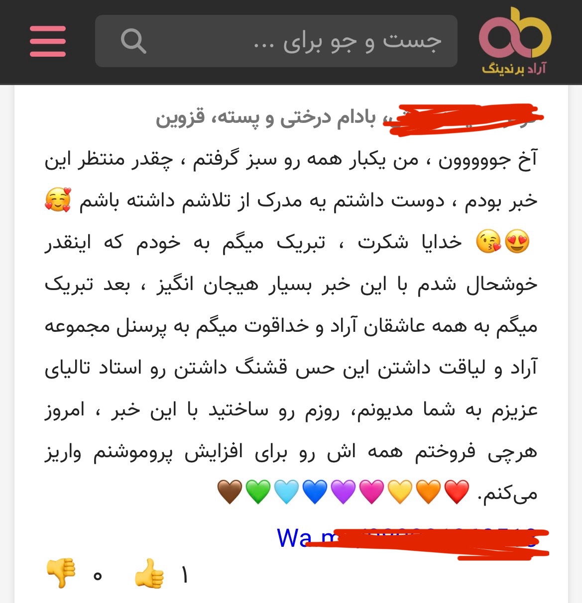 با حال خوب دلتان شاد می شویم و با ناکامی هایتان که عموما در اثر عدم توجه به آموزش های مدیران ارشد است غصه می خوریم اما کار خاصی هم از دستمان بر نمی آید جز آنکه توصیه کنیم با آراد پیوند عمیقتری برقرار نمایید.
