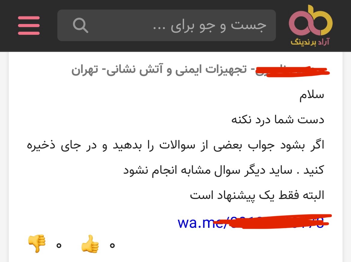 سوال اگر دارید در منوی سایت گزینه تماس با ما بروید و بپرسید تا روز بعد بر روی سایت قرار گیرد و مدیران بنگاه های تجاری پاسخ دهند.