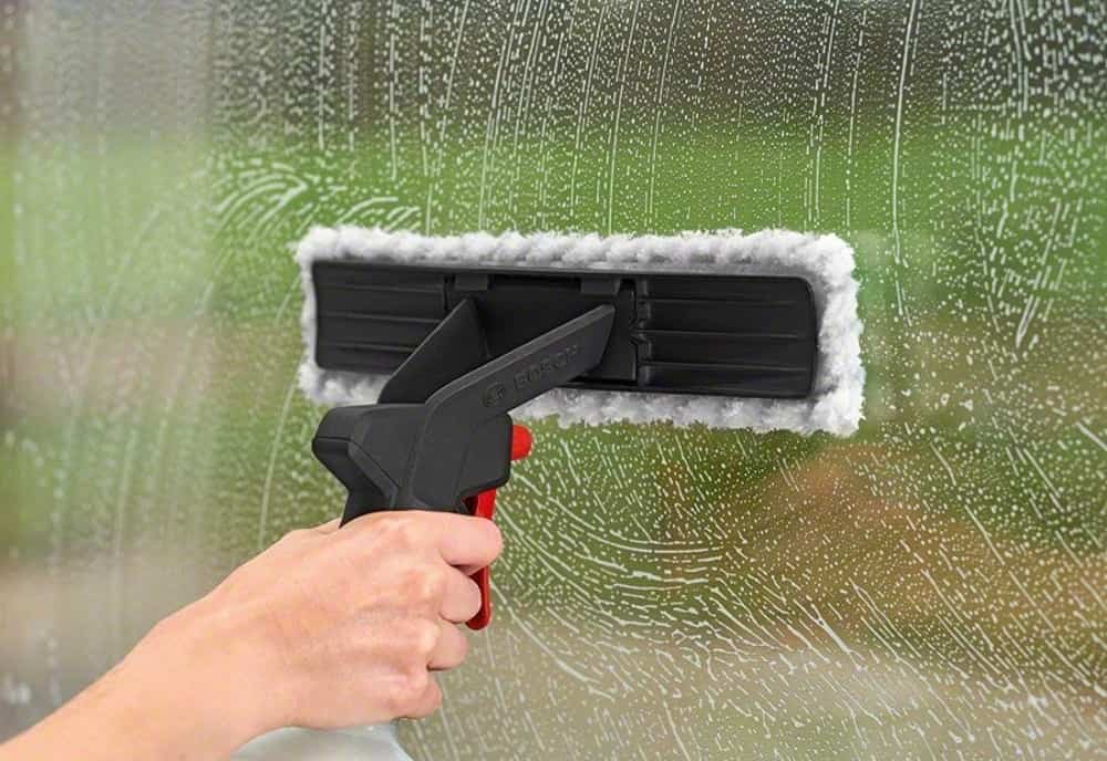 اگر کثیفی زیادی روی شیشه ها وجود دارد ابندا با استفاده از اسپری که روی آن تعبیه شده است و ما آن را با مواد شوینده پر نموده ایم بر روی سطوح اسپری نموده و سپس با قسمت تی آن شروع به کشیدن از قسمتهای بالایی شیشه به سمت پایین می کنیم، با این روش شیشه ها کاملا تمیز شده و هیچگونه جای لک و کثیفی باقی نمی ماند.
