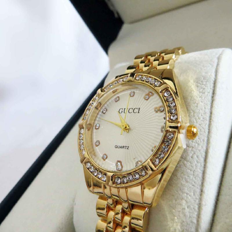 ساعت اصلی گوچی دارای قابی خرج کار شده با نگین می باشد که توجه به این نکته در هنگام خرید دارای اهمیت بوده و از نشانه های شناخت این کالا است.