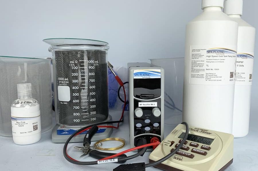 یکی دیگه از تجهیزات که برای آبکاری طلا نیاز است، دستگاه آب مقطر ساز بوده که باعث تنظیم عیار محلول آبکاری شده و قابلیت آبکشی قطره قبل و بعد از آن کارهایی را دارد همچنین دارای مخزن ۱۲ لیتری می باشد. یکی دیگه از تجهیزات دستگاه آبکاری قلمی بوده که دارای وانهای ۵ لیتری بوده که تمام اطلاعات آن را بر روی صفحه نمایش دیجیتال مشخص شده و قابلیت رنگ کردن برای فلزات چون طلا و نقره داشته و می توان آنها را به رنگهای دلخواه تبدیل نمایید. نمونه دیگر دستگاهها به تولید رسیده است که دارای مخزت 4 لیتری بوده و جزو مجهزترین دستگاهها و محسوب میشود و تمام کارایی آن به صورت تمام اتوماتیک انجام می گیرد همچنین می توان تمام فلزات را به وسیله این دستگاه آبکاری نمایید. یکی دیگر از تجهیزاتی که برای آبکاری انواع فلزات لازم است اند استیل بوده که در ابعاد و سایزهای مختلفی در بازار موجود می باشد این وسیله برای محلول زرد و قرمزی طلا بوده و همچنین برای لایه برداری چربیهای روی فلزات مورد استفاده قرار می گیرد. آبکاری فلز برنج برای افزایش مقاومت آن شده با استفاده از آبکاری طلا با عمر مفید آن را بالاتر برده و آن را به یکی از زیورآلات زیبا تبدیل می کند و می توان در مدت طولانی تر از آن استفاده کرد.