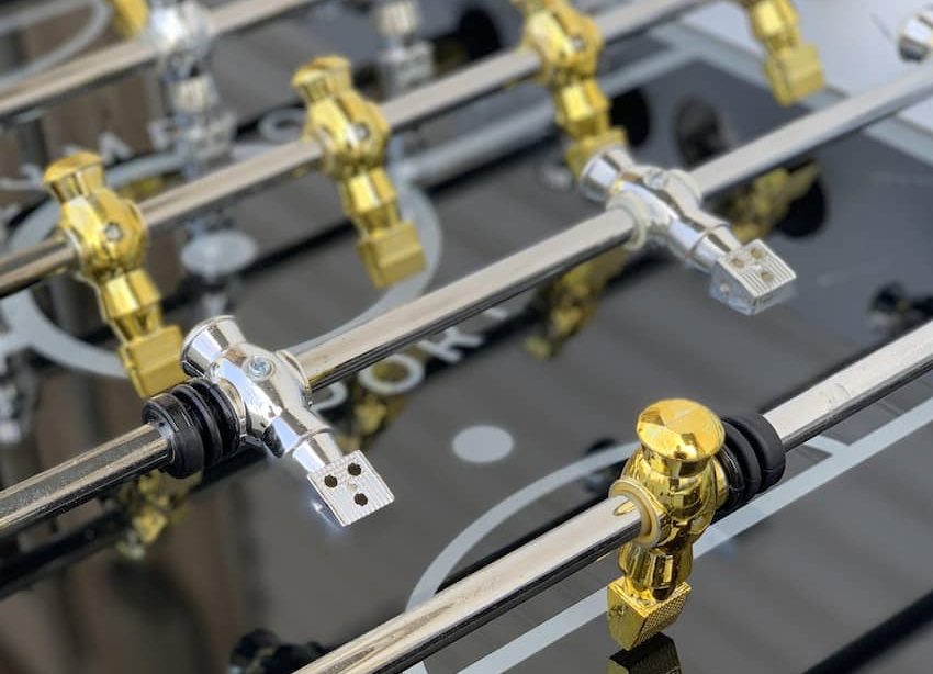 یکی از زیباترین و جذاب ترین میزهای فوتبال دستی برقی موجود در عرصه فروش میز فوتبال دستی طلایی می باشد. فوتبال دستی یا foosball به معنی پا و توپ است اگر نگاه دقیقتری به اجزای یک میز فوتبال دستی بیندازید، خواهید دید که هدف از بازی این است که تیم شما توپ را به سمت دروازه حریف بکوبد.