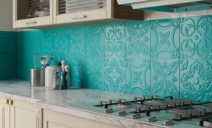 در زمان انتخاب کاشی برای آشپزخانه رنگ فیروزه ای مناسب با دکوراسیون حائز اهمیت است، البته رنگهایی مثل فیروزه ای می تواند با هر دکوراسیونی مناسب باشد و اصولاً رنگ چشم نوازی است و طرفداران زیادی دارد.