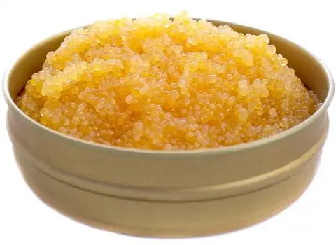 خاویار ماسول: ماسول یک اصطلاح روسی و به معنای نمک ریز دانه است و وجود این اصطلاح بر روی بسته بندی نشان دهنده این است که در هنگام فرآوری محصول از درصد بسیار کم نمک استفاده شده است.