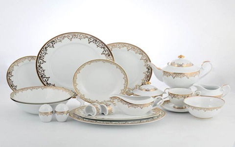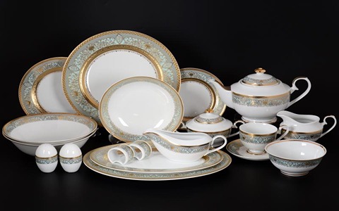 روی جعبه این کالا تعداد ظروف مشخص شده است، به عنوان مثال تعداد دیس ها، بشقاب غذاخوری، بشقاب میوه خوری، بشقاب خورشت خوری، تعداد بشقاب سالاد، پیاله ها، نمک پاش، سوپ خوری، فنجان چای خوری، نعلبکی، قندان، قوری و غیره مشخص شده است.