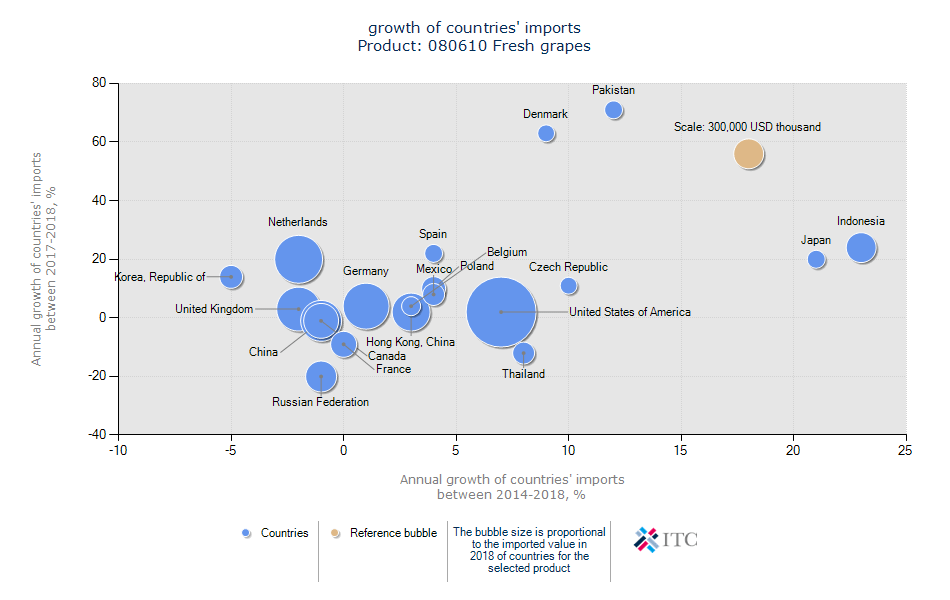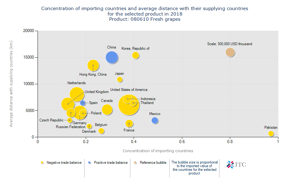 میانگین فاصله از کشور وارد کننده: ۵,۲۸۲ KM آمار واردات انگور هدف شناخت متقاضیان و پتانسیل ها در بازار جهانی است.