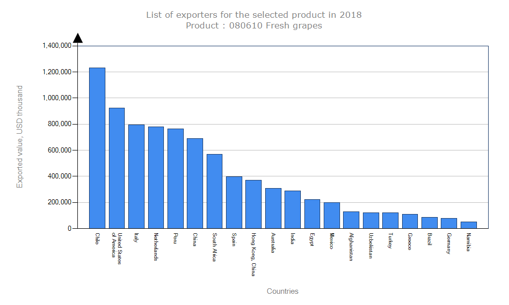 آمار صادرات انگور هدف شناسایی رقبا در بازار جهانی است.