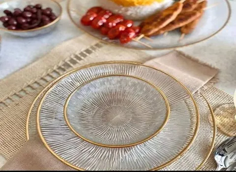 بشقابهای بلور دور طلایی میتوانند روی میزهای رستورانها سفرههای اتاقهای میهمانی و حتی در لابی هتل استفاده شوند باعث طراوت و زیبایی به هر محیطی میشوند.