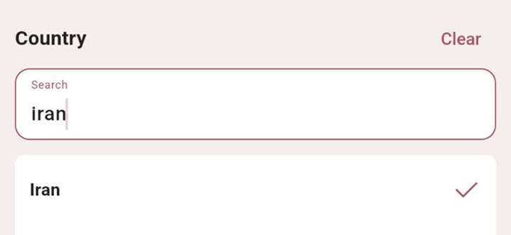 حالا در قسمت سرچ کلمه iran را بنویسید (همچنین میتوانید کشورهای دیگر را سرچ کنید).