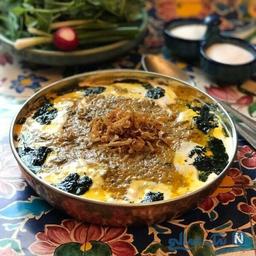 این غذای خوشمزه را همراه کشک و نعناع خشک با نان سرو می کنند.