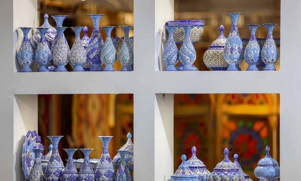 وسایل مینا کاری شده توسط کاشی و فلز ساخته می شود که هنرمندان مینا کار با ترکیب کردن رنگهای مات آثار بسیار زیبایی را خلق می کنند.