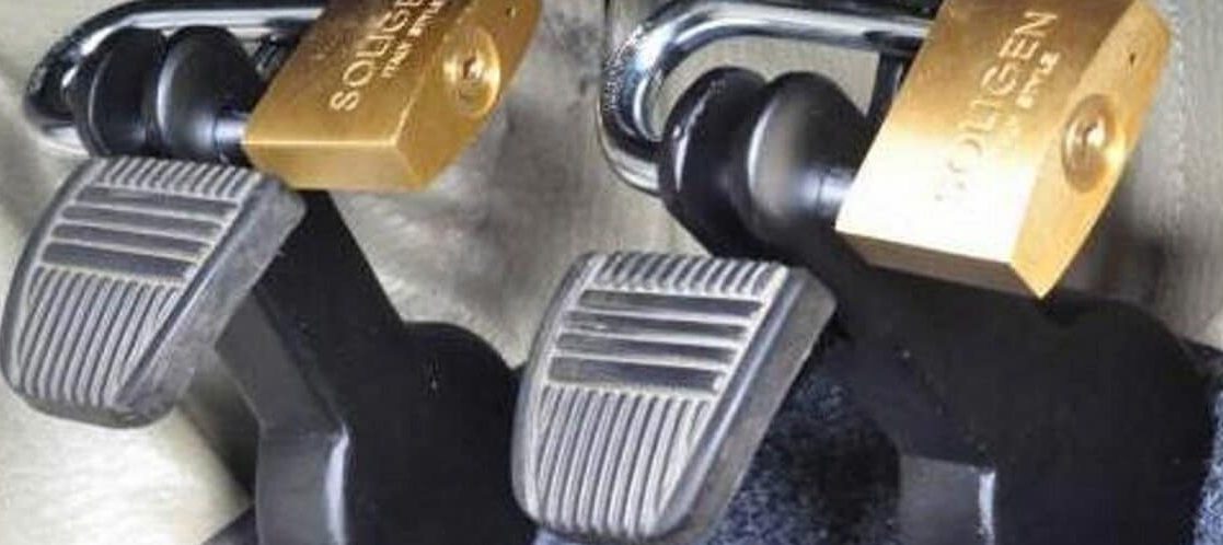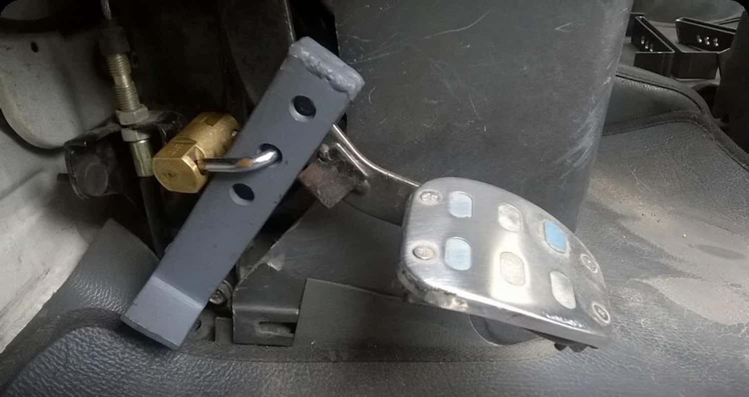 یکی از بهترین ابزاری که در به سرقت نرفتن خوردو بسیار اهمیت دارد قفل پدال و قفل فرمان بوده که به صورت اتوماتیک چرخ دنده آن باز و بسته می گردد و البته در انواع دست ساز نیز موجود بوده که سه قفله است و در زمان بستن به پدال از سه جهت بسته و در حفظ و عدم حرکت ماشین بسیار مناسب است.