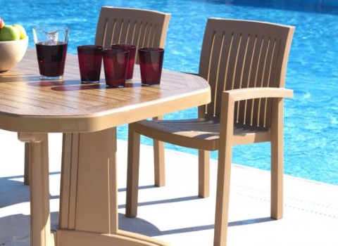به دلیل ساحلی بودن این شهر فروش میز استخری ساحلی در آن فروش زیادی دارد چون اجناس پلاستیکی در مقابل رطوبت مقاوم هستند و در تماس با آب دچار خرابی نمی شوند. صندلی های پلاستیکی ارائه شده در این مجموعه به صورت دسته دار و بدون دسته تولید می شود و به شکل پایه فلزی هم موجود هستند.