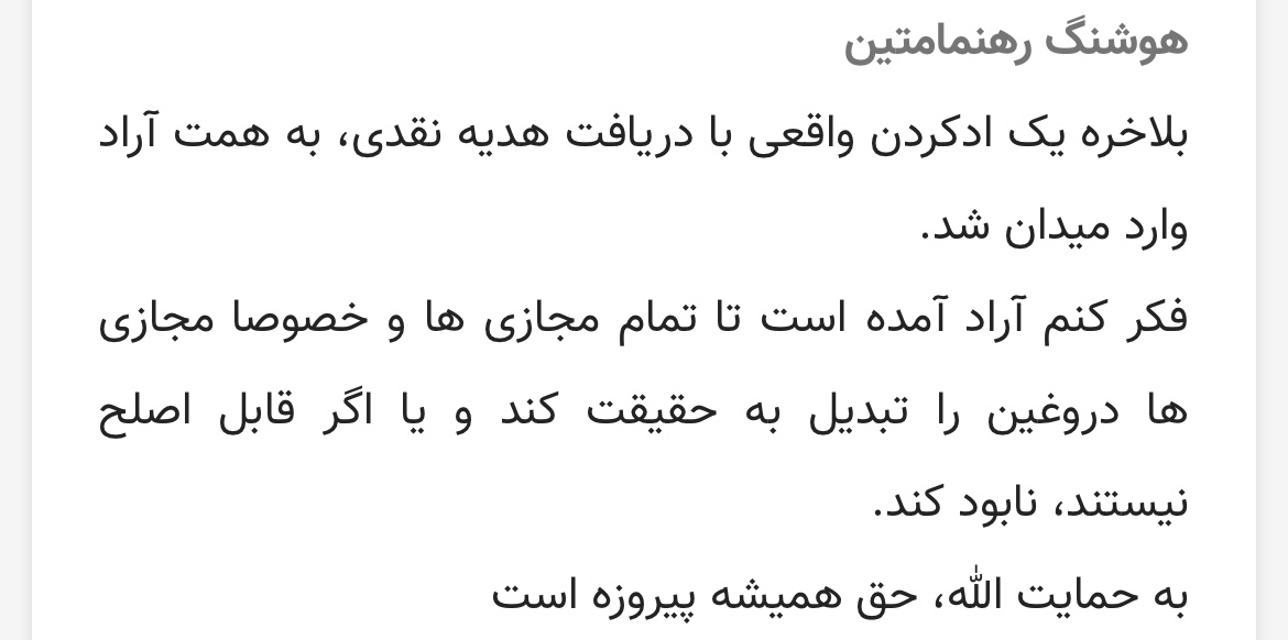 الحمدالله در کامنتهای برگزیده مردی از دیار کرمانشاه مهندس رهنما متین عزیز نیز حضور دارند.