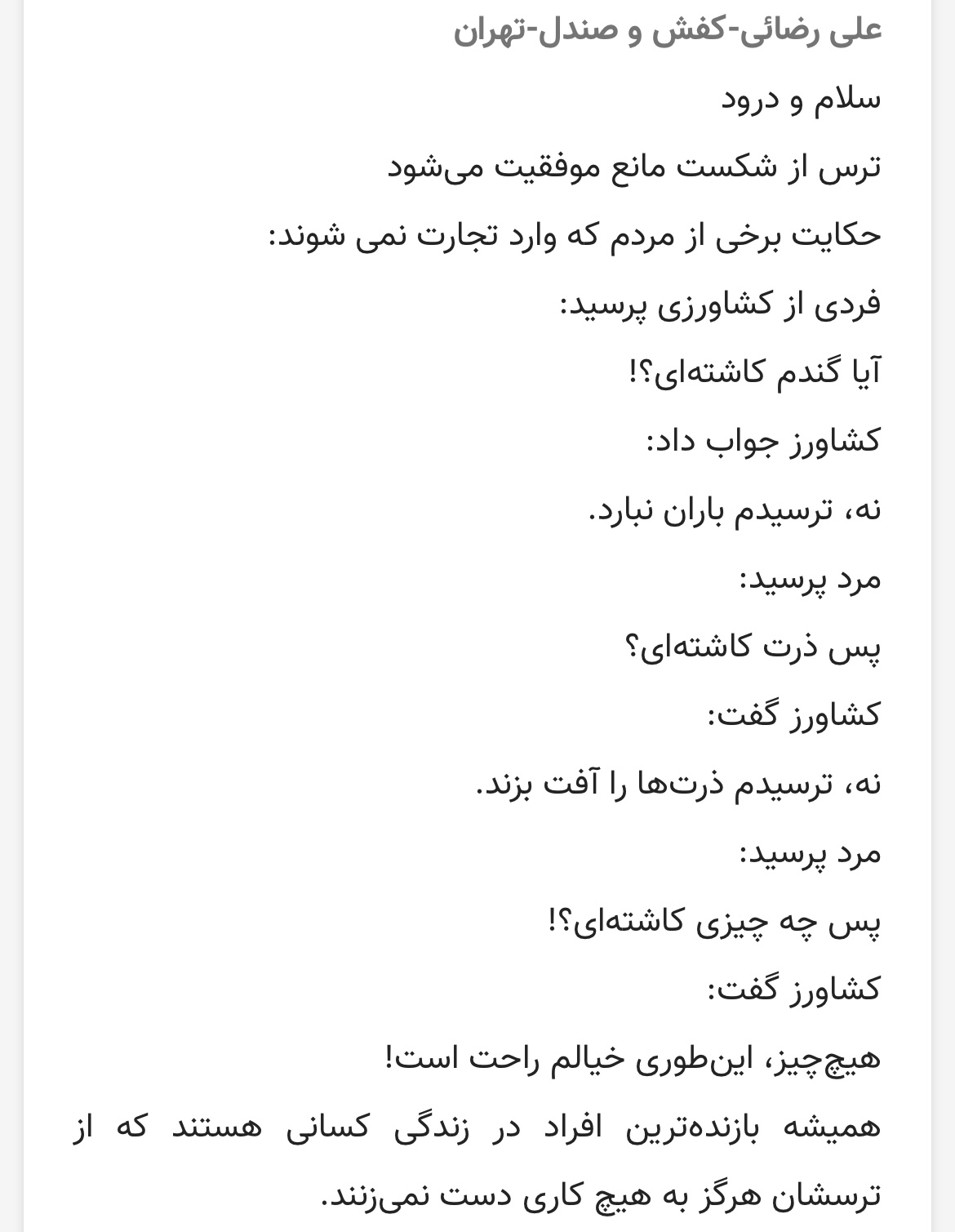 حکایتی که در کامنت آقای رضایی بود واقعا قشنگ بود...