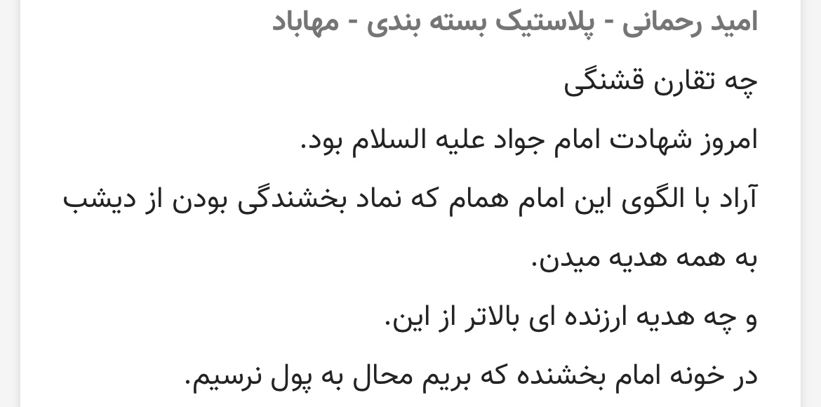 ممنونم از اراد که همه جوره به فکر ارتقا سطح مالی و اقتصادی مردم هستش