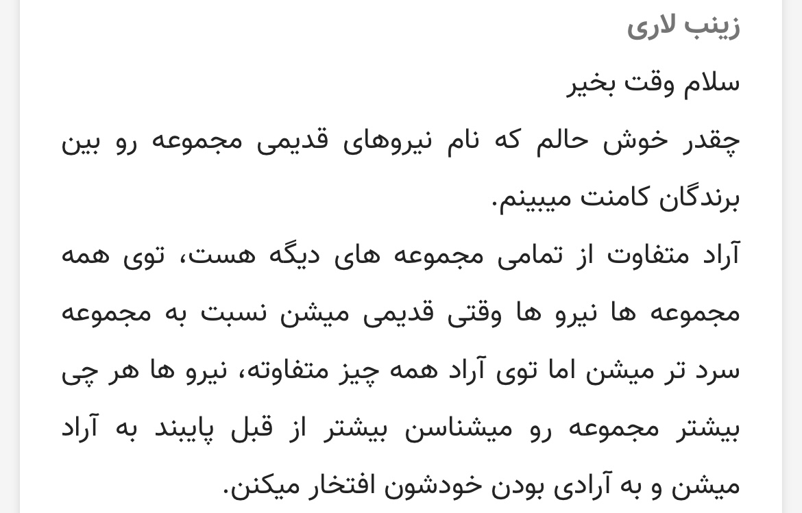 چه کامنتهای دلنشینی و امیدوارم که همکاران در آراد همیشه موفق و سربلند باشند