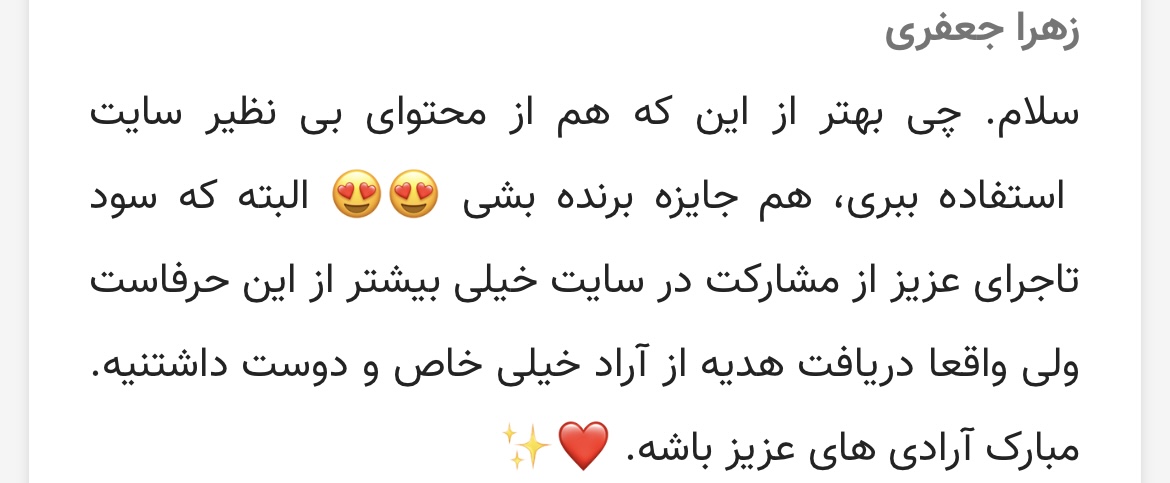 برنده شدنتان مبارک ان شاالله باز هم در لیست افراد برنده ها باشید.